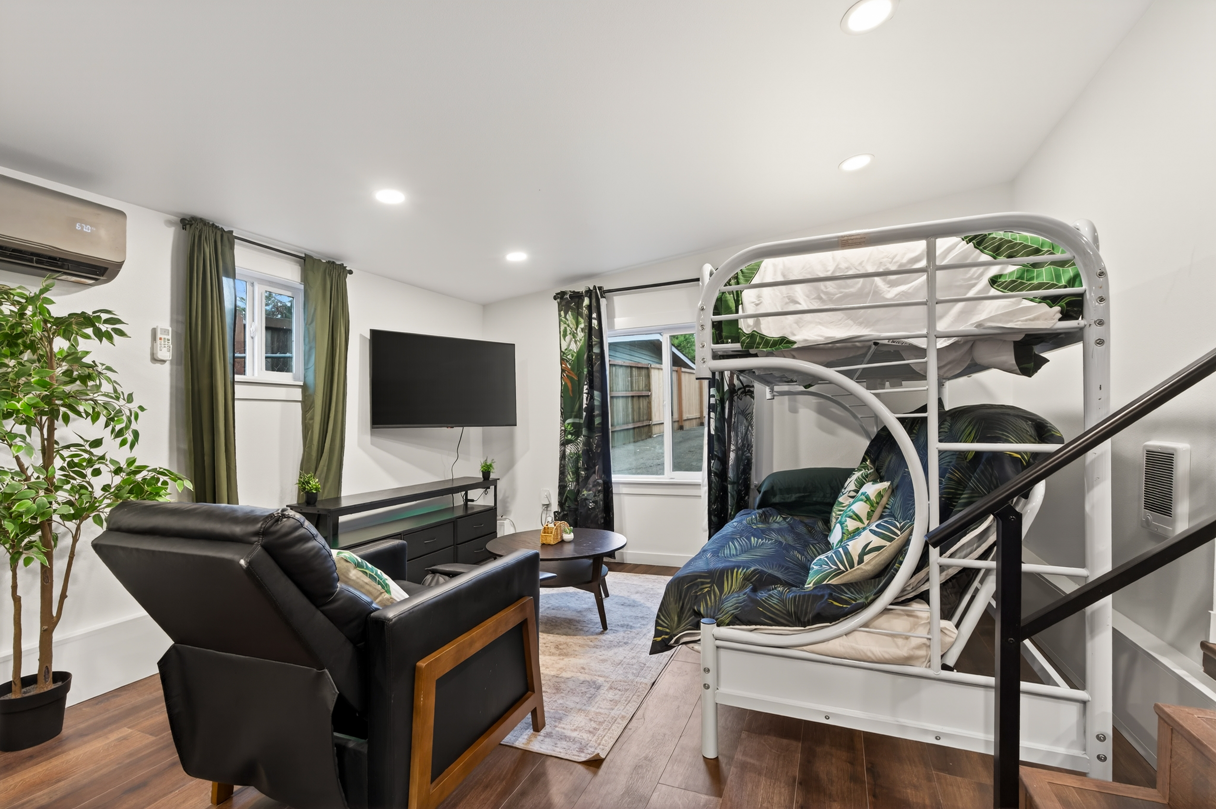 Good to Know • This is a fully private studio unit with its own entrance. • No shared indoor or outdoor spaces. • Private backyard area for your exclusive use. • Sleeps up to 3 guests comfortably due to studio layout. • Mini-split AC and heating for year-round comfort. • Please park in the designated gravel area and do not block the main driveway. • Located in a quiet residential neighborhood — quiet hours are 10 PM–8 AM. • Exterior Ring doorbell camera at the entrance for security (no interior cameras).